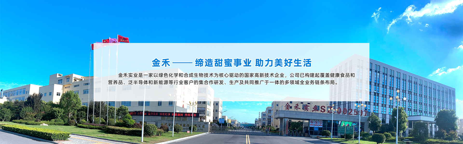 安徽金禾實(shí)業(yè)股份有限公司是一家致力于服務(wù)美好生活和先進(jìn)制造,專業(yè)從事食品配料、大宗及電子化學(xué)品和功能性化工中間體的高新技術(shù)企業(yè),是甜味劑安賽蜜、三氯蔗糖和香料麥芽酚的主要生產(chǎn)商。公司主營(yíng)業(yè)務(wù)為食品健康配料的生產(chǎn)研發(fā),新型化工材料及中間體的生產(chǎn)研發(fā),大宗及電子化學(xué)品的生產(chǎn)研發(fā)。主要服務(wù)于食品飲料、日用消費(fèi)、醫(yī)藥健康、農(nóng)業(yè)環(huán)保及先進(jìn)制造業(yè)等領(lǐng)域的客戶。下游知名客戶包括各大食品飲料及香精香料公司。公司前身為始建于1974年的來(lái)安縣化肥廠,股份制公司成立于2006年,2011年7月7日在深交所中小企業(yè)板掛牌上市,股票代碼為002597(ISIN: CNE1000015C4),于2017年12月1日納入“深港通”標(biāo)的,于2018年1月2日納入深證成指成份股,連續(xù)入選“證券時(shí)報(bào)”主辦的第十一屆和第十二屆“中國(guó)中小板上市公司價(jià)值五十強(qiáng)”名單。總部位于安徽滁州,擁有安徽來(lái)安及定遠(yuǎn)鹽化工園兩個(gè)生產(chǎn)基地,在合肥及南京分別設(shè)有合成材料研究院有限公司和應(yīng)用研發(fā)中心。